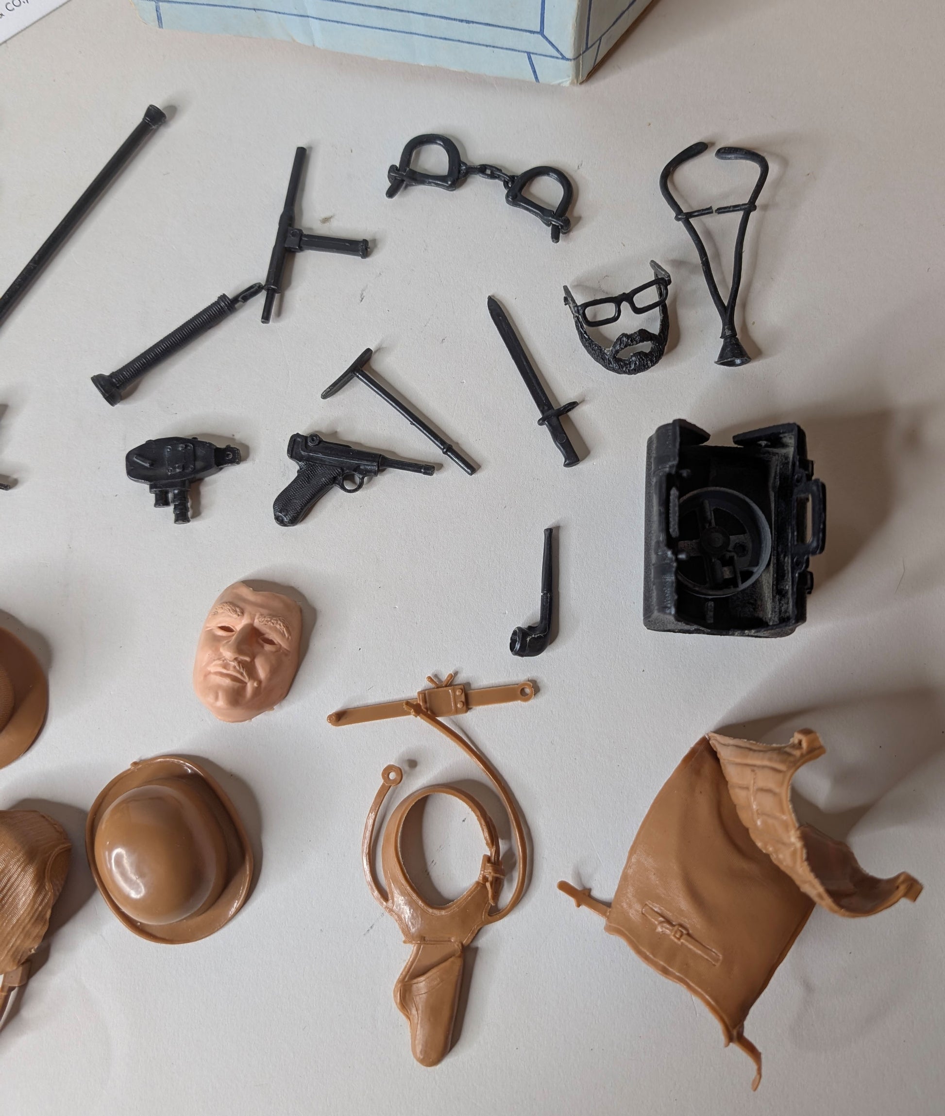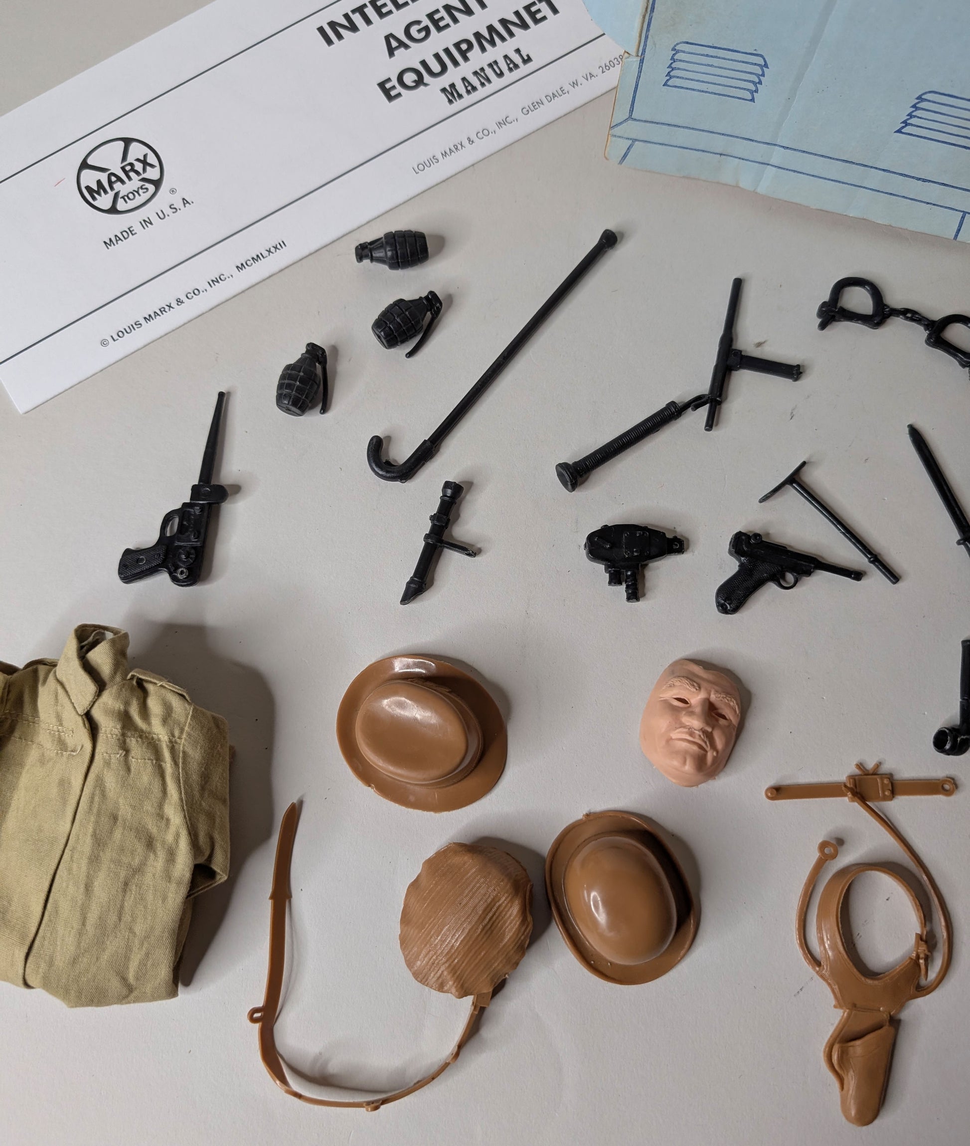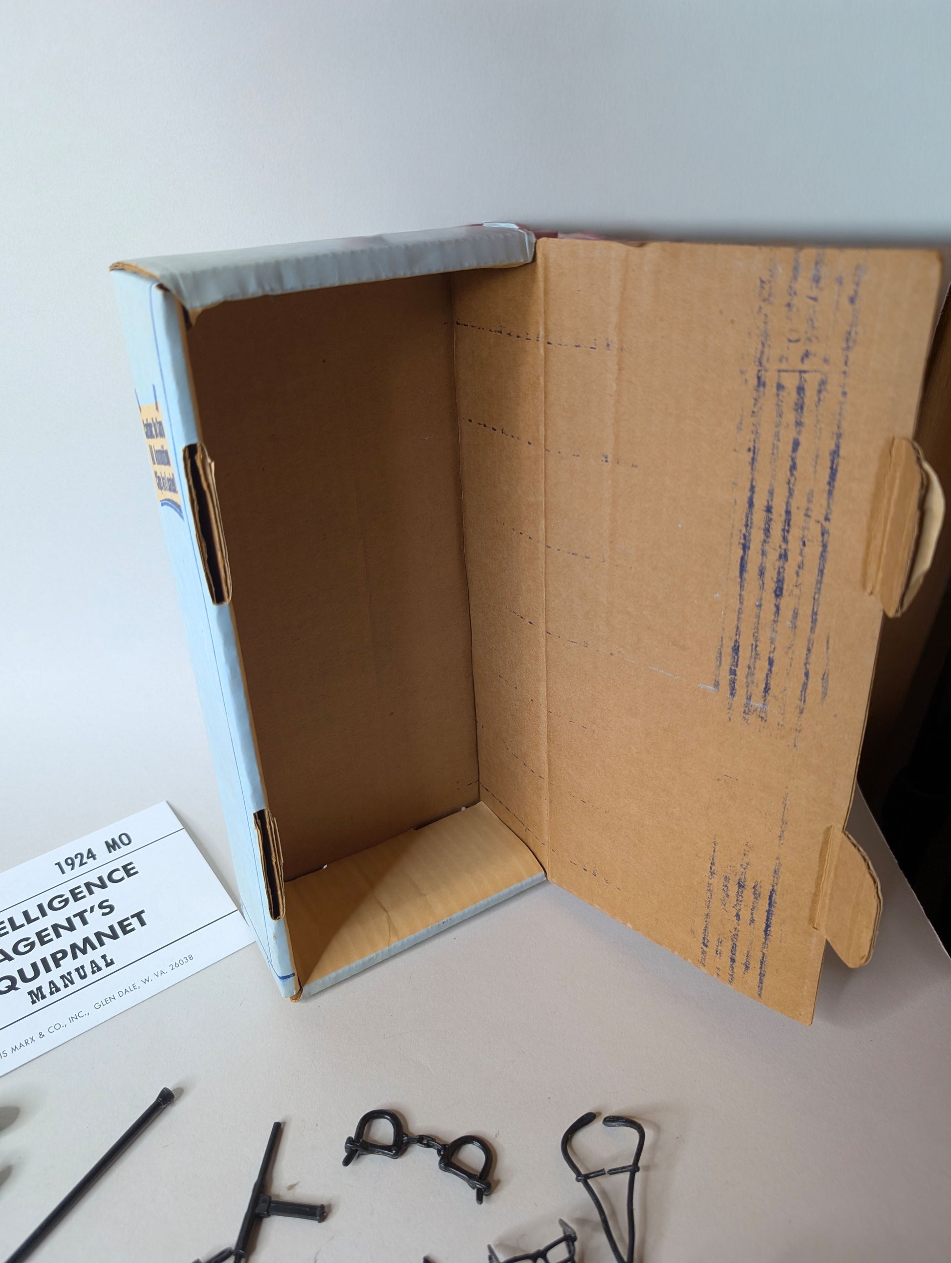 Great Condition: Stock Number 1924 MO, This original cardboard locker and accessories are in great shape. Some wrinkles and edge wear, but no tears. Reproduction Intelligence Agent Gear manual is made by me. Accessories as pictured are in very good to excellent condition.